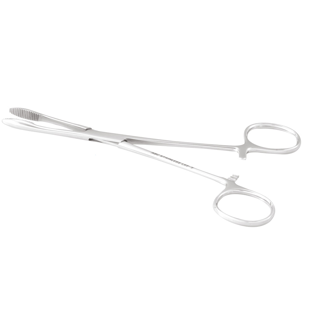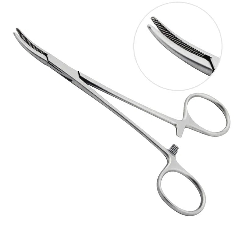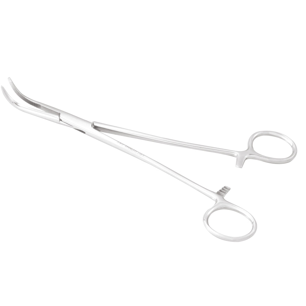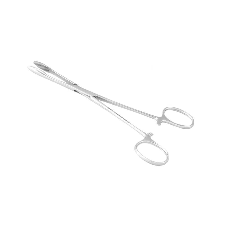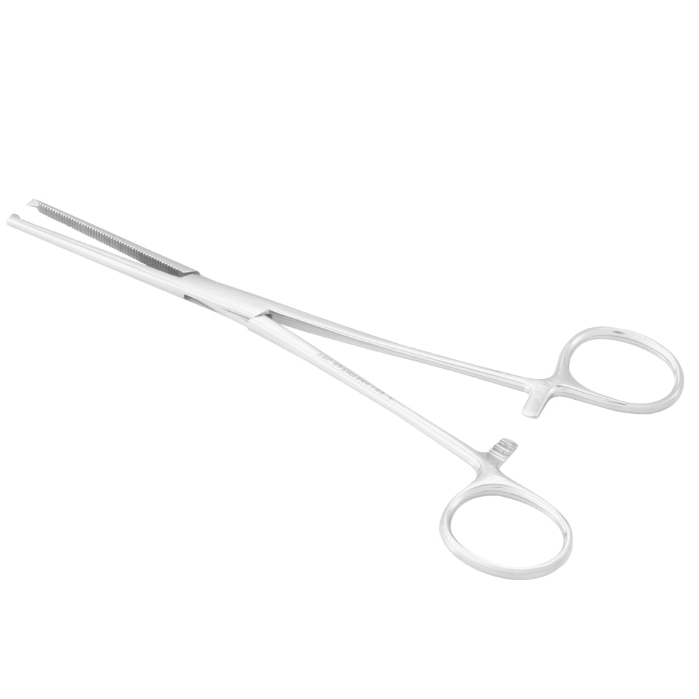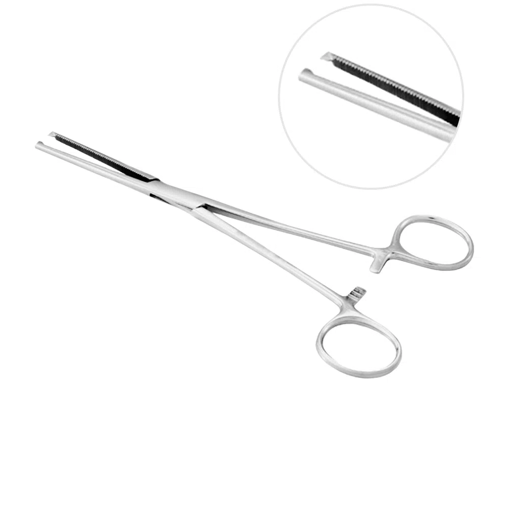 Instrumento cirúrgico usado para pinçamento (hemostasia).Características do Produto:• Produto confeccionado em aço inoxidável AISI-420;• Ponta reta, com serrilha;• Com embalagem plástica individual.