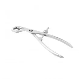 Possui dentes e serrilha. Produto confeccionado em aço inoxidável AISI-420 e fabricado de acordo com Padrões Internacionais de Qualidade, Normas da ABNT, CE.